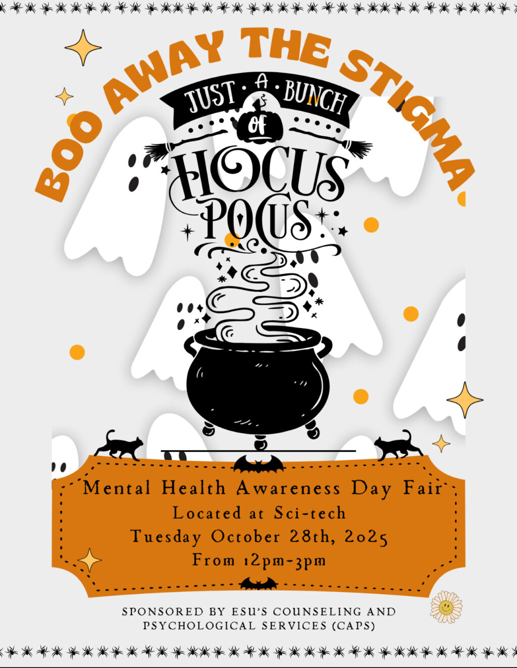 The slogan of the event was “Boo Away the Stigma – Just a Bunch of Hocus Pocus,” which ties into the goals of the event which are to help end the stigma around seeking help for mental health challenges and to make students aware of the supports available to them both on campus and in the community.