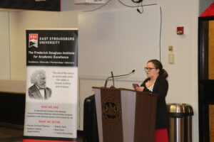 The event was organized by the executive director of The Frederick Douglass Institute, Laura Kieselbach who is also an English professor at ESU. She organized this event with ESU English professor Artress B. White. White is the faculty adviser of Sigma Tau Delta, the English honor society, and the Fredrick Douglass Institute.